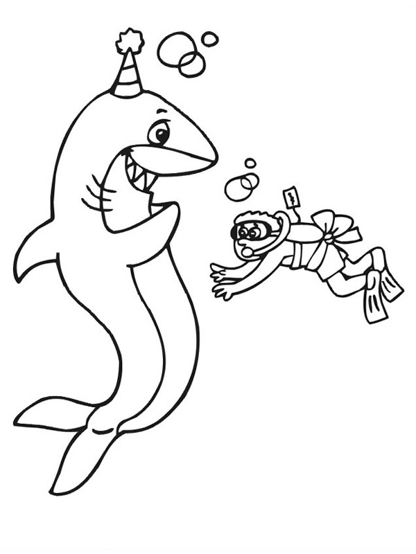 Kleur nu de kleurplaat van haai is jarig. Of kleur één van de andere leuke 15 Haaien kleurplaten op Leukekleurplaten.nl